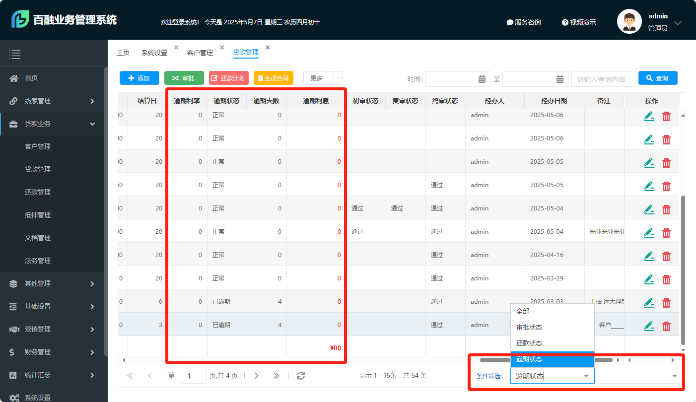 支持贷款管理的多条件查询过滤。